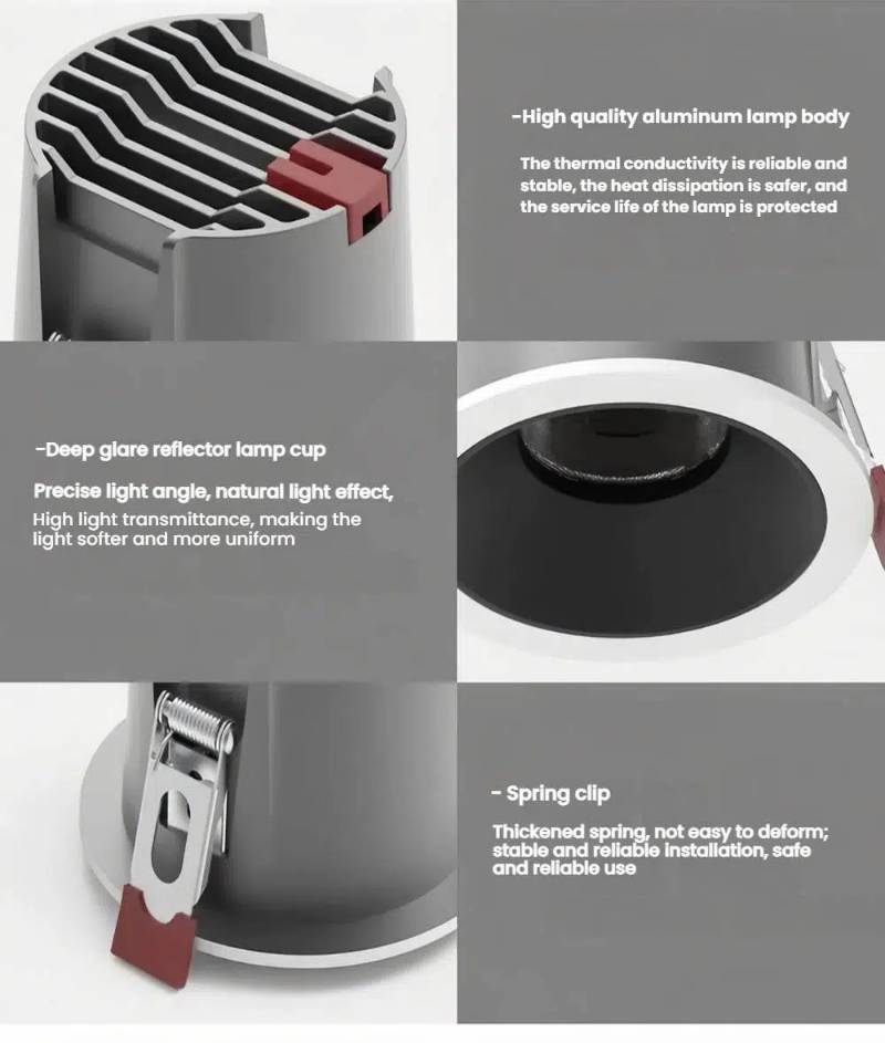 Glare generally refers to dazzling light. To make our eyes more comfortable, when choosing spotlights, pay attention to the glare value (UGR). The smaller the UGR, the softer the light. At least choose a lamp with UGR < 16. At present, the UGR of good brand spotlights can even reach UGR < 13.Common specific anti-glare methods for lamps:(1) Deep cup anti-glare: This specifically refers to the distance from the light source to the light port. The larger the distance, the deeper the light source is hidden, and the less likely it is to produce glare.