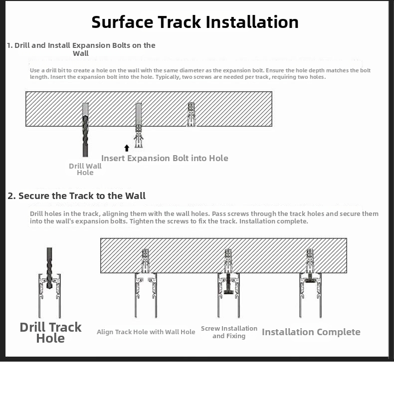 1. Pre-embedded Installation (Plasterboard with Embedded Track):