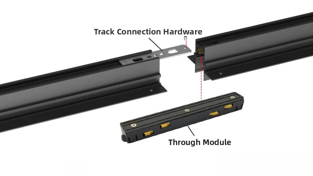 Straight-through Module: Secure the two tracks with track connector hardware, then install the straight-through module using magnetic attraction to connect the two tracks.