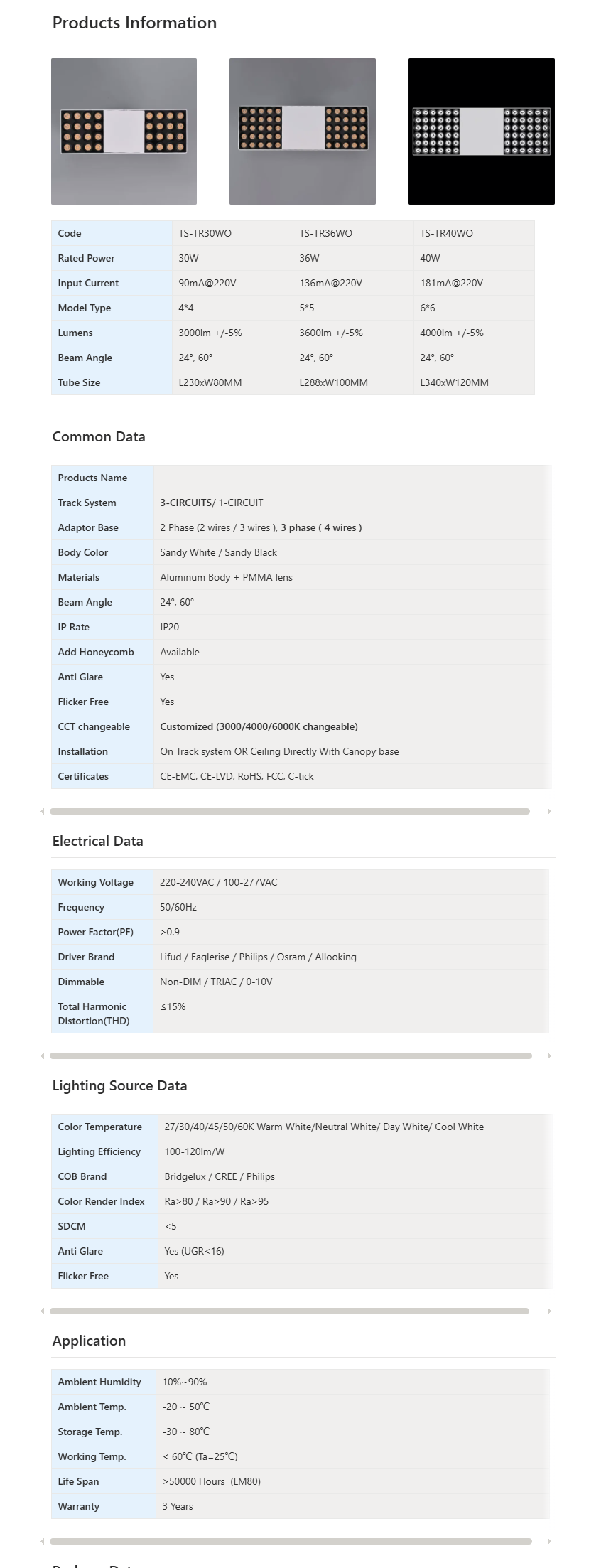 > Panel design for Track System. > Flood lighting for more space with different beam angle > Anti-Glare and UGR<16 > 5 years warranty